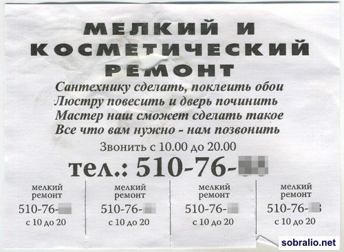 Рекомендуется не упускать из виду главных врагов расклеенной рекламы – дворников. Зачастую они дают провисеть листовкам всего пару-тройку часов. Поэтому, выбрав конкретный район, следует расклеить в нем объявления несколько раз. Ведь нет никакой гарантии, что все, кто может стать Вашими потенциальными клиентами, успеют с первого раза увидеть информацию.