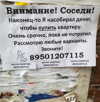 Правило первоеЯркий заголовок. Сделать его таким можно или сразу перейдя к сути предложения, или проявив креативность. Примеры таких объявления можно найти в интернете. Так автор нижеприведенного объявления в Нижневартовске – риэлтор, утверждает, что по этому объявлению звонило очень много людей, предлагая помощь «несчастному» зятю.