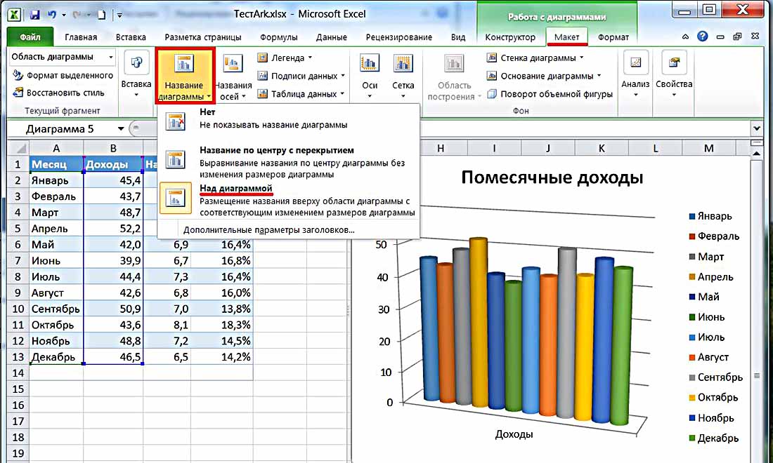 Чтобы получить представление о том, что можно добавлять в диаграмму или изменять в ней, в разделе Работа с диаграммами откройте вкладки Конструктор, Макет и Формат и просмотрите группы и параметры на каждой из них.
