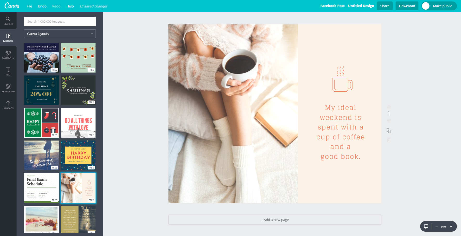 Это онлайн-редактор изображений, где в том числе есть инструмент для создания презентаций. Как и на Crello, здесь доступны стильные шаблоны, библиотека изображений и медиа. Можно добавлять и свои изображения. В сравнении с Crello поиск шаблонов здесь более удобный – есть фильтр по цветовой гамме и языку текста.