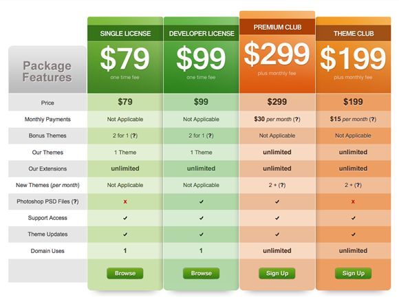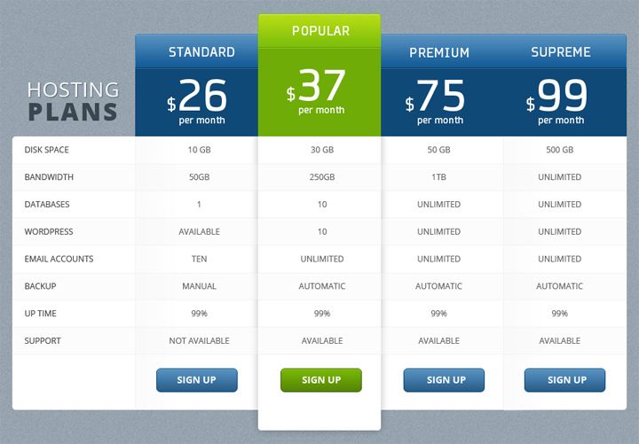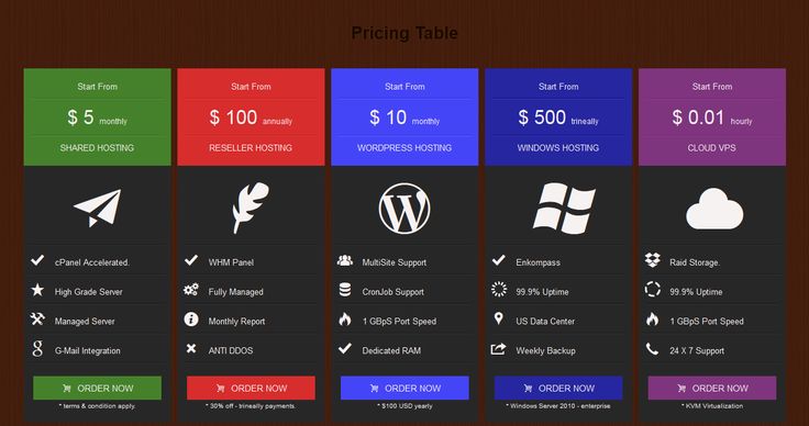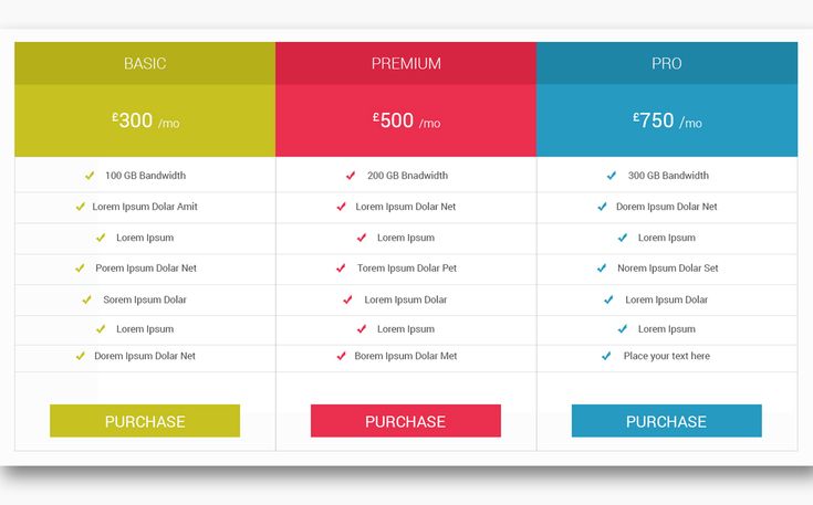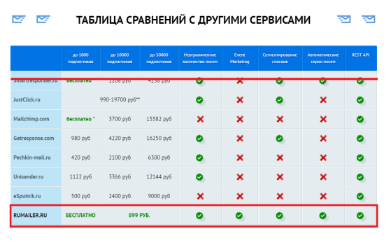 Шаблон сравнительной таблицы