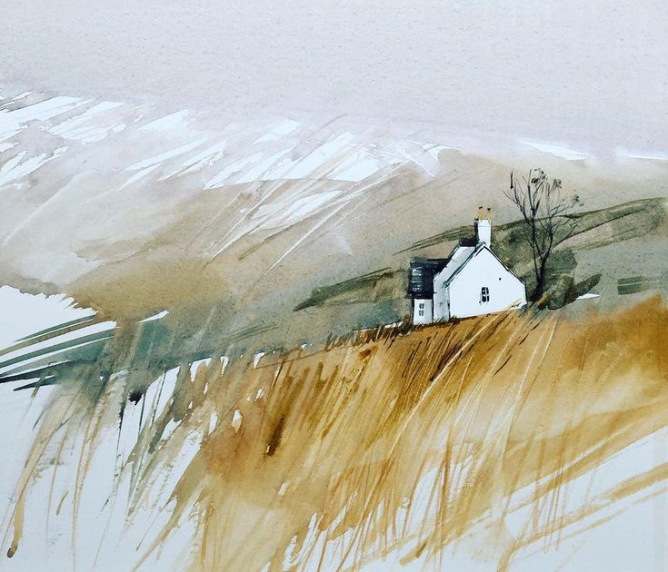 Акварель 10 класс – Простой пейзаж старой фермы
