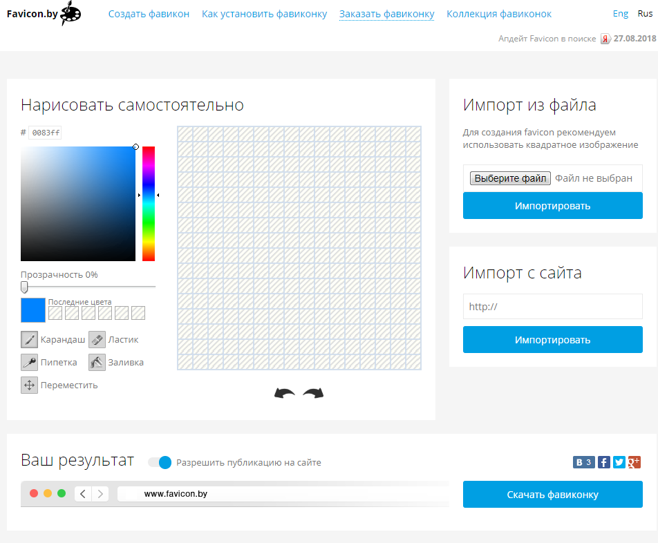 com  . ΠΡ ΠΌΠΎΠΆΠ΅ΡΠ΅ Π½Π°ΡΠΈΡΠΎΠ²Π°ΡΡ ΡΠ²ΠΎΠΉ Favicon ΡΠ°ΠΌΠΎΡΡΠΎΡΡΠ΅Π»ΡΠ½ΠΎ ΠΈΠ»ΠΈ Π·Π°Π³ΡΡΠ·ΠΈΡΡ Π»ΡΠ±ΠΎΠ΅ ΠΈΠ·ΠΎΠ±ΡΠ°ΠΆΠ΅Π½ΠΈΠ΅ ΡΠΎ ΡΠ²ΠΎΠ΅Π³ΠΎ ΠΊΠΎΠΌΠΏΡΡΡΠ΅ΡΠ°. ΠΡ ΠΌΠΎΠΆΠ΅ΡΠ΅ Π΄ΠΎΠ±Π°Π²ΠΈΡΡ ΡΠ²Π΅Ρ ΠΊ ΡΠΎΠ½Ρ Favicon. ΠΠ°ΡΡΡΠΎΠΉΡΠ΅ ΡΠ²ΠΎΠΉ Favicon Ρ Π»ΡΠ±ΡΠΌ ΡΠ²Π΅ΡΠΎΠΌ, ΠΊΠΎΡΠΎΡΡΠΉ Π²Ρ Ρ