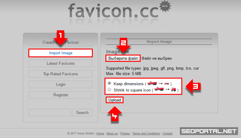 ΠΡΠ±Π΅ΡΠΈΡΠ΅ ΠΏΡΠΎΡΠ΅ΡΡ, ΠΊΠΎΡΠΎΡΡΠΉ Π²Ρ ΠΏΡΠ΅Π΄ΠΏΠΎΡΠΈΡΠ°Π΅ΡΠ΅. ΠΠ½ ΡΠΎΠ·Π΄Π°ΡΡ Favicon ΠΎΠ±ΡΡΠ½ΠΎΠ³ΠΎ ΡΠ°Π·ΠΌΠ΅ΡΠ° 16x16px. ΠΠ°Π³ΡΡΠ·ΠΈΡΠ΅ Favicon Π½Π° ΡΠ²ΠΎΠΉ ΠΊΠΎΠΌΠΏΡΡΡΠ΅Ρ ΠΈ ΠΏΠΎΠΌΠ΅ΡΡΠΈΡΠ΅ Π΅Π³ΠΎ Π² ΠΊΠΎΡΠ½Π΅Π²ΡΡ ΠΏΠ°ΠΏΠΊΡ Π²Π°ΡΠ΅Π³ΠΎ ΡΠ°ΠΉΡΠ°.