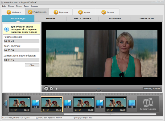 Сервис работает со всеми популярными видео форматами и позволяет обрезать ролики в несколько кликов:
