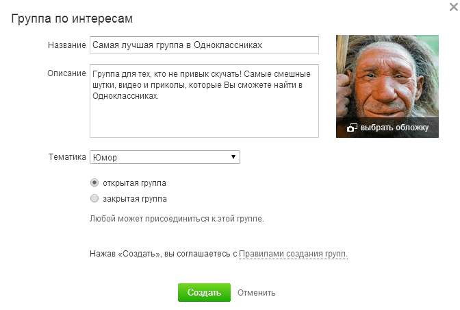 Пример: «Эта группа создана для мужчин, влюблённых в автомобили», «Сообщество мам, для которых важна не только семья, но и творчество».