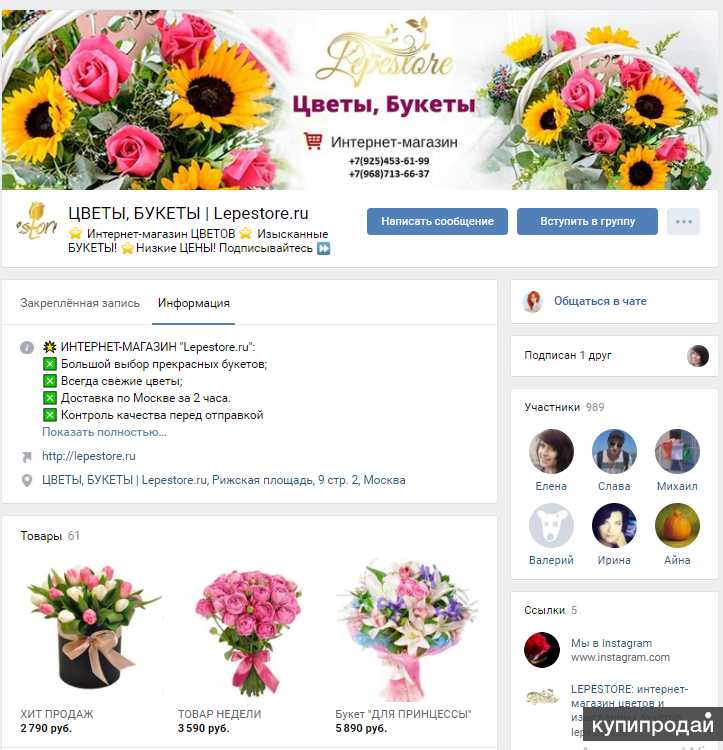 Так как «продающим» группам выгодно конвертировать каждое мимолётное желание подписчика купить продукт, важно указать все контакты магазина, чтобы клиент быстрее мог связаться для осуществления покупки.