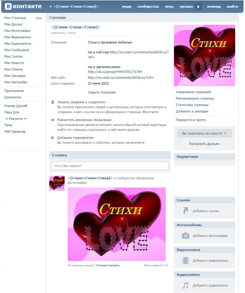 Не перегружайте текст дополнительной информацией в виде ссылок, телефонных номеров и схем проезда — для этого есть другие элементы, например меню сообщества.