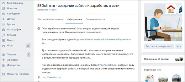 Если вы не блещете креативом и не готовы часами страдать над текстом, лучше прямо ответить на вопросы посетителей страницы. Не стоит пускать пыль в глаза, прикрываясь эпитетами и штампами. Это оттолкнет потенциальных клиентов, а подпишутся на сообщество совершенно ненужные вам люди. Подготовил пять примеров описаний для реальных сообществ в ВК.