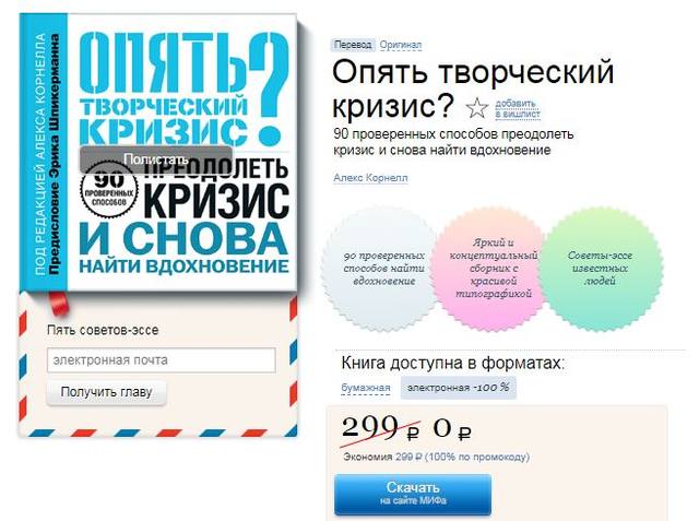 «Опять творческий кризис? 90 проверенных способов преодолеть кризис и снова найти вдохновение» и выбрать удобный способ его получения: самовывоз, доставка курьером или отправка