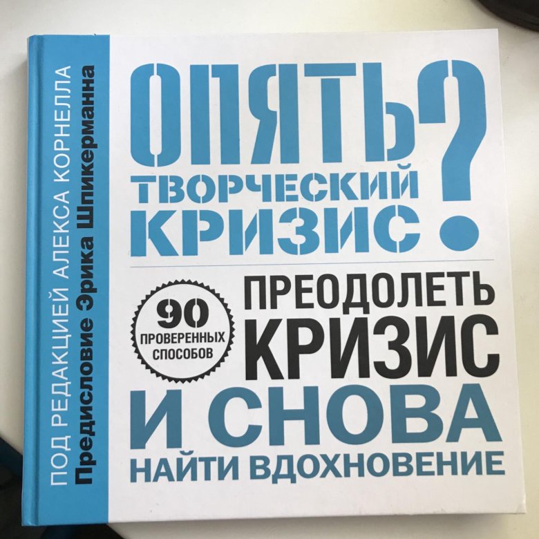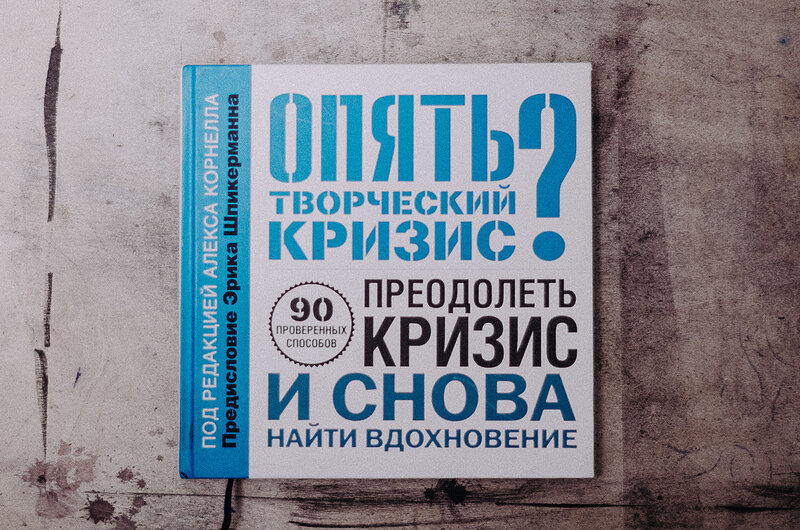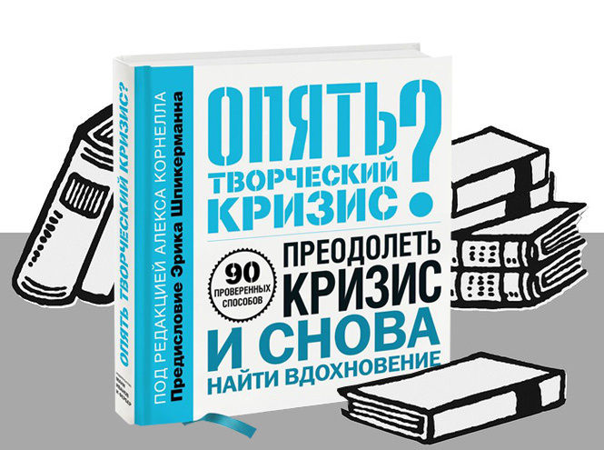 Это книга «Опять творческий кризис?» под редакцией Алекса Корнелла, которая имеет мотивирующее второе название «90 способов преодолеть кризис и снова найти вдохновение». Она недавно вышла в издательстве «Манн, Иванов и Фербер».