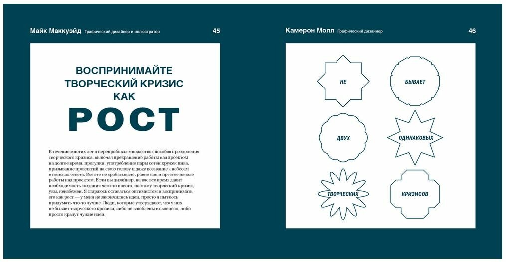 Как написал Алекс: «Творческий кризис — результат того, что вы слишком много думаете». И эта книга — просто кладезь великолепных идей.