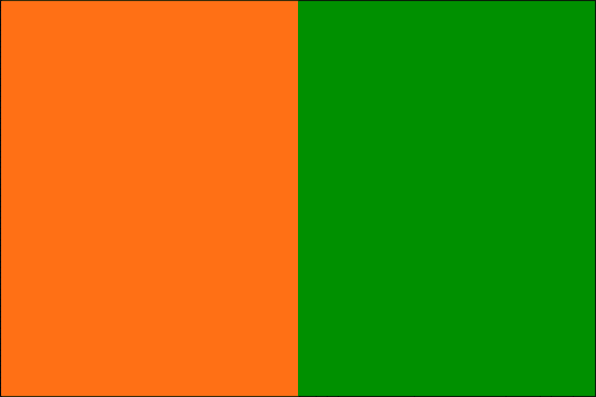 Флаг Берега Слоновой Кости , западноафриканской страны, провозгласившей свою независимость от Франции в 1958 году, представляет собой типичную французскую трехцветную компоновку, но также имеет близкое сходство с ирландским флагом; тем не менее, он имеет цвета в обратном порядке: оранжевый занимает сторону подъемника, а зеленый — со стороны мухи.