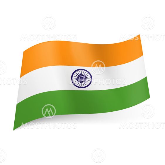 Индийский флаг , дебютировавший 22 июля 1947 года, состоит из оранжевого, белого и зеленого цветов, расположенных сверху вниз в горизонтальной плоскости.