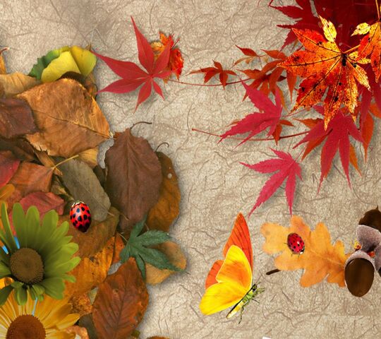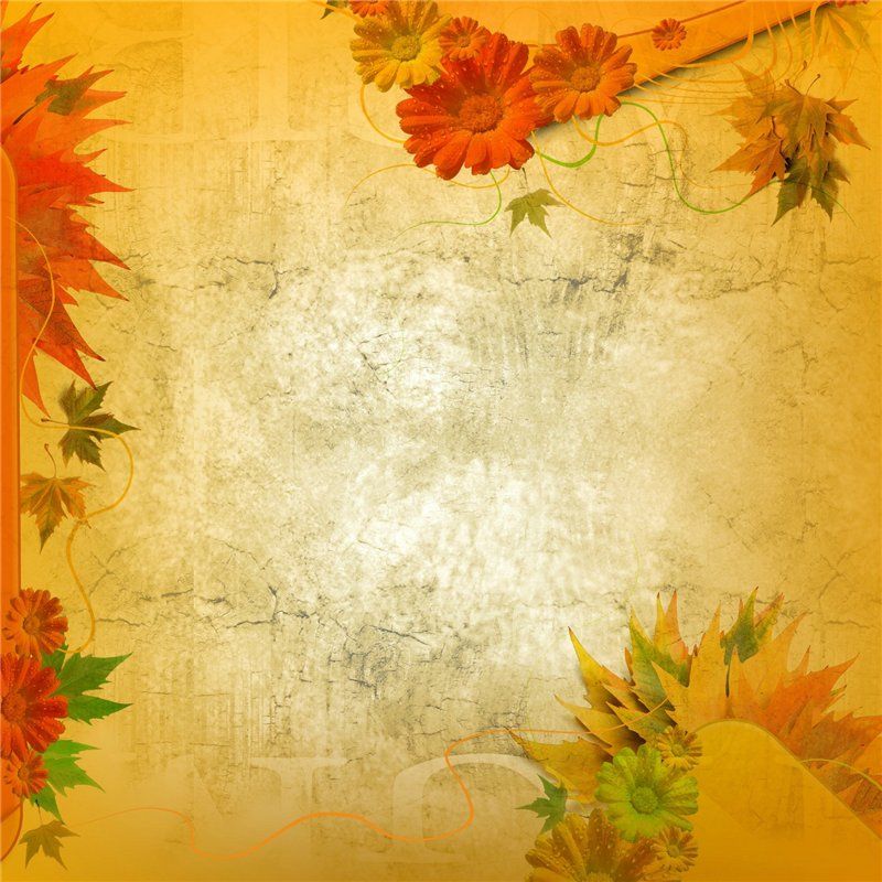 Осенний фон с травой, цветами и листьями. Загружаемый