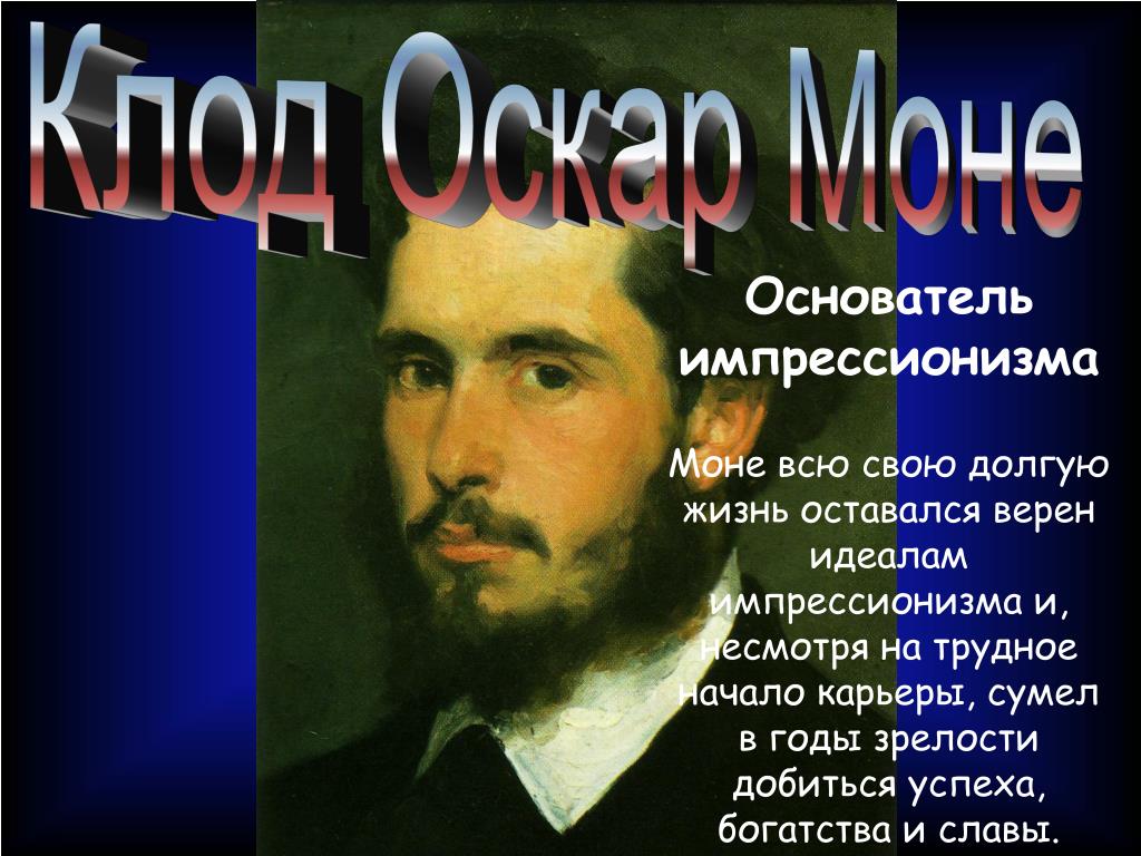 ΠΠ³ΠΎ ΡΠ°ΠΌΡΠ΅ ΠΈΠ·Π²Π΅ΡΡΠ½ΡΠ΅Β ΠΊΠ°ΡΡΠΈΠ½ΡΒ β Β ΠΠΏΠ΅ΡΠ°ΡΠ»Π΅Π½ΠΈΠ΅, Β ΠΠΎΡΡ ΠΎΠ΄ ΠΈ Β ΠΡΠ²ΡΠΈΠ½ΠΊΠΈΒ . ΠΠ»ΠΎΠ΄ ΠΠΎΠ½Π΅ Π·Π°ΡΠ΅ΠΊΠΎΠΌΠ΅Π½Π΄ΠΎΠ²Π°Π» ΡΠ΅Π±Ρ ΠΊΠ°ΠΊ ΡΠ°Π»Π°Π½ΡΠ»ΠΈΠ²ΡΠΉ Ρ ΡΠ΄ΠΎΠΆΠ½ΠΈΠΊ ΡΠ²Π΅ΡΠ° ΠΈ ΠΎΡΡΠ°Π²ΠΈΠ» Π½Π°ΠΌ Π²Π½ΡΡΠΈΡΠ΅Π»ΡΠ½ΡΡ ΠΊΠΎΠ»Π»Π΅ΠΊΡΠΈΡ ΠΈΠ· Π±ΠΎΠ»Π΅Π΅ ΡΠ΅ΠΌ 2000 ΡΠ°Π±ΠΎΡ. Π 1883 Π³ΠΎΠ΄Ρ ΠΎΠ½ ΠΏΠ΅ΡΠ΅Π΅Ρ Π°Π» Π² ΠΠΈΠ²Π΅ΡΠ½Π΅, Π³Π΄Π΅ ΠΏΡΠΎΠΆΠΈΠ» ΠΏΠΎΡΡΠΈ 40 Π»Π΅Ρ. Π₯ΠΎΡΠΎΡΠΎ ΠΈΠ·Π²Π΅ΡΡΠ½ΠΎ, ΡΡΠΎ ΠΊΠ°ΡΡΠΈΠ½Π° ΠΠΎΠ½Π΅ Impression, Sunrise Π±ΡΠ»Π° ΠΏΠ΅ΡΠ²ΡΠΌ ΠΏΡΠΎΠΈΠ·Π²Π΅Π΄Π΅Π½ΠΈΠ΅ΠΌ ΠΈΠΌΠΏΡΠ΅ΡΡΠΈΠΎΠ½ΠΈΡΡΠΎΠ², ΠΊΠΎΡΠΎΡΠΎΠ΅ ΡΠ°ΠΊΠΆΠ΅ Π΄Π°Π»ΠΎ Π½Π°Π·Π²Π°Π½ΠΈΠ΅ Π΄Π²ΠΈΠΆΠ΅Π½ΠΈΡ.
