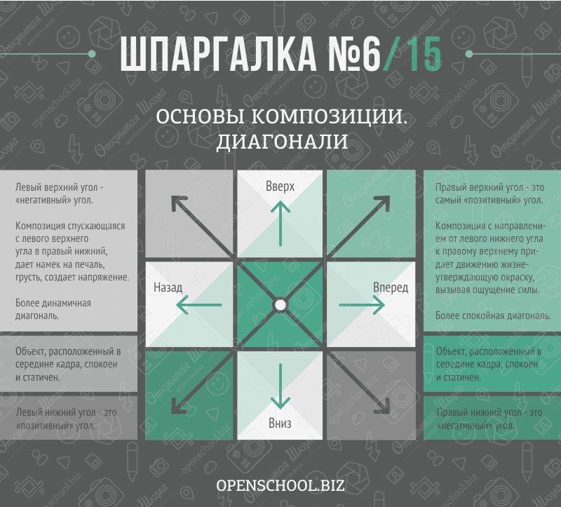 Не забываем также про правило равновесия и симметрии, ведущие линии, диагональные линии (для передачи перспективы) и ритмы. Это все части композиции, которые делают кадр более интересным и наполненным смыслом.