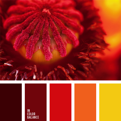 Сочетание цветов: алый с желтым: теплое, броское, летнее. Такая пара везде привлечет к себе внимание, что делает ее местами даже неуместной. Ее место в активном отдыхе, летнем отдыхе, праздниках. Для такой палитры рассмотрите оттенки абрикосового, сигнального, золотистого, яркого золота, янтарного.