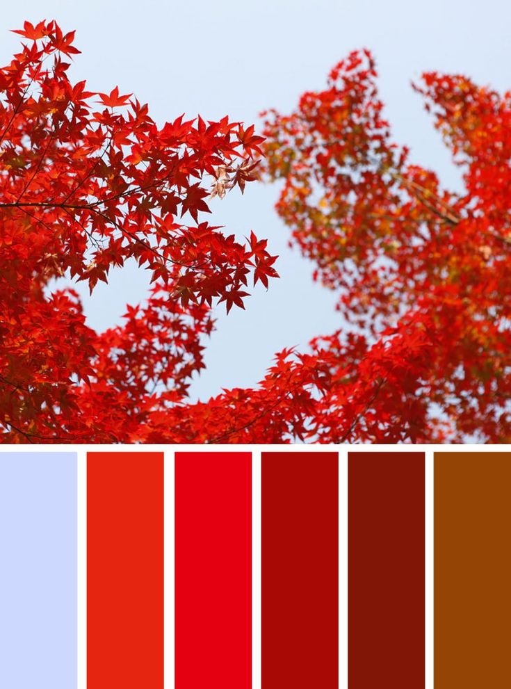 Сочетание алого и коричневого цветов придает паре сочности, но без излишней импульсивности. Коричневый сглаживает, чрезмерную яркость, добавляя светло-темного контраста. В палитре участвуют такие оттенки, как цвет какао с молоком, светло-коричневый, бронзовый, сепия, кофейный.