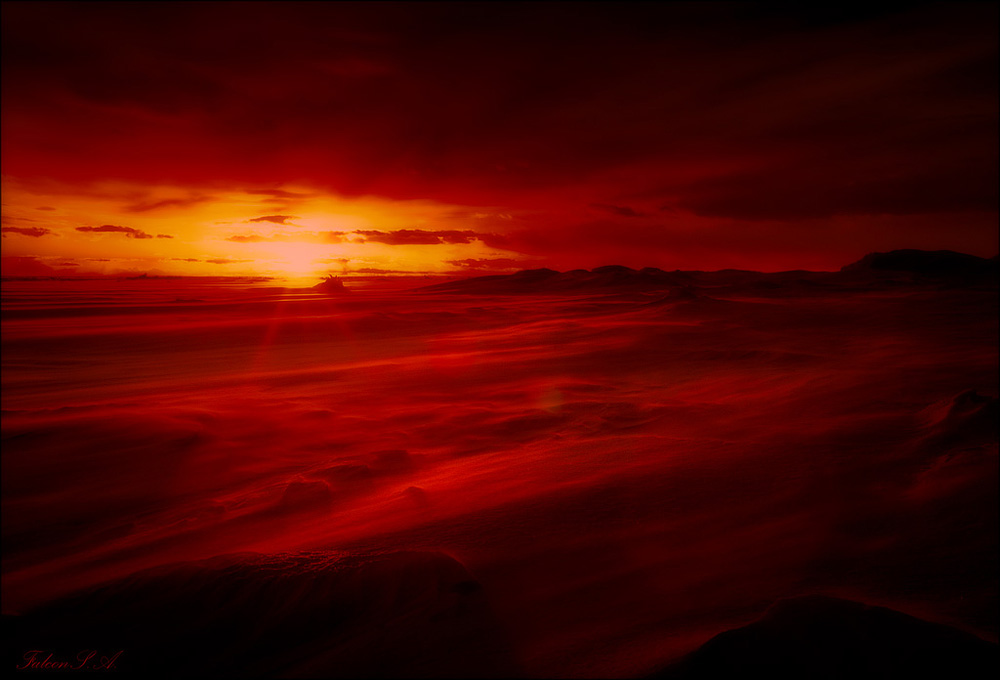 Сочетание алого и синего цвета несет в себе предельный контраст холодного и теплого, как огонь и космическо-небесное пространство, что делает его выразительным, привлекательным. К тому же синий гасит излишнюю активность красного, доводя сочетание до умеренного. Удачным будет комбинация с небесно-голубым, голубым цветом воды, сине-зеленым, черным морем, берлинской лазурью.