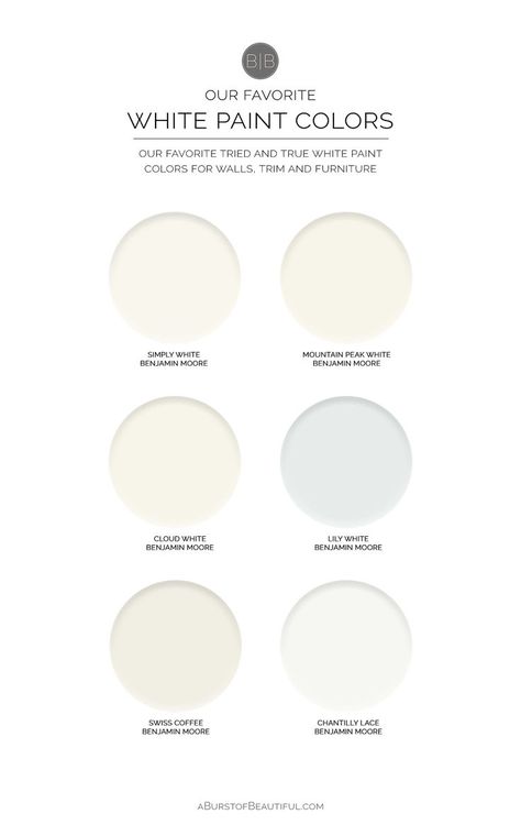 Любимый дизайнерами белый — классический мягкий оттенок. Он добавляет яркость и яркость в любую комнату и является популярным выбором для покраски молдингов и отделки.