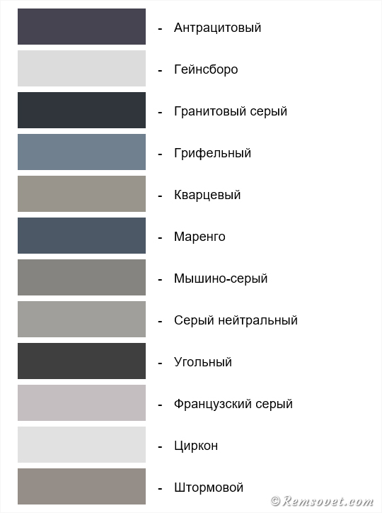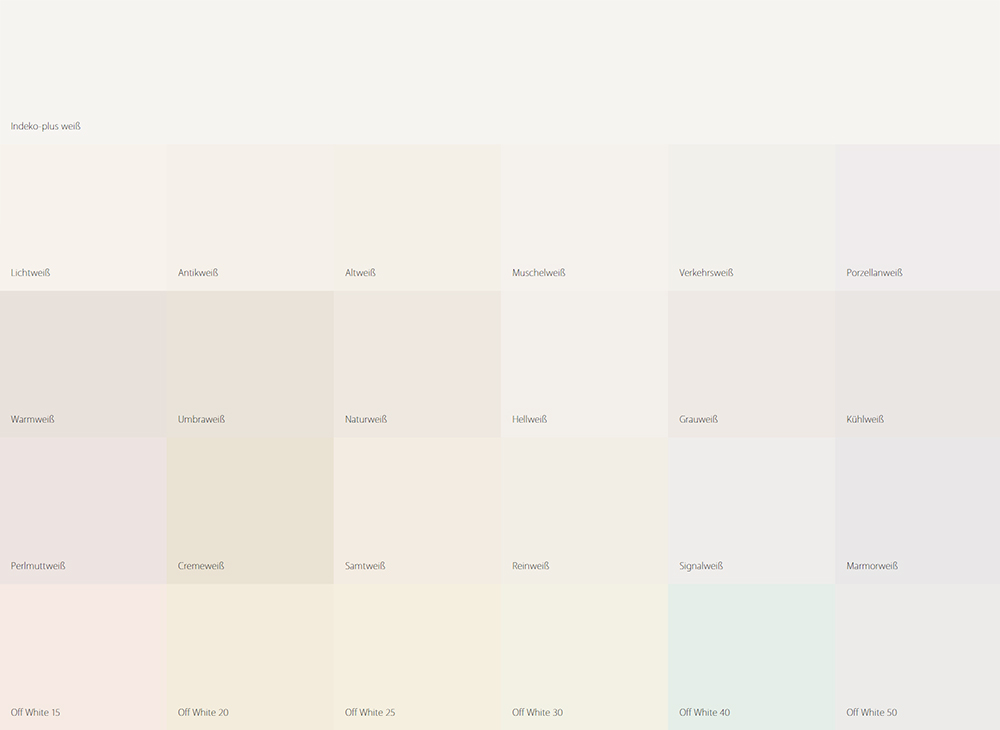 Робкий белый имеет тенденцию красиво смешиваться с тонкостями хроматических соседей, но при этом имеет достаточно собственного цвета, чтобы выделиться среди них. , Почерневший, имеет наименьшее прикосновение серого. Этот тип серого пигмента изначально был получен из «ламповой сажи», дыма горящих масляных ламп. Этот цвет мягкий и воздушный, добавляет комнате глубины, но при этом выглядит как » белая комната»