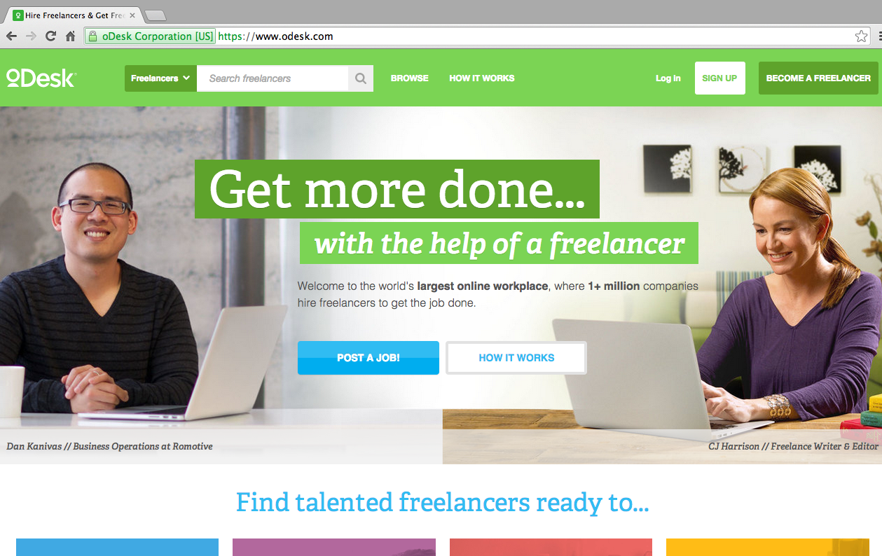 Я также пробовал Elance, который, кстати, теперь слился с oDesk, но там мне долго не удавалось взять свой первый заказ, поэтому я и перешел на oDesk.