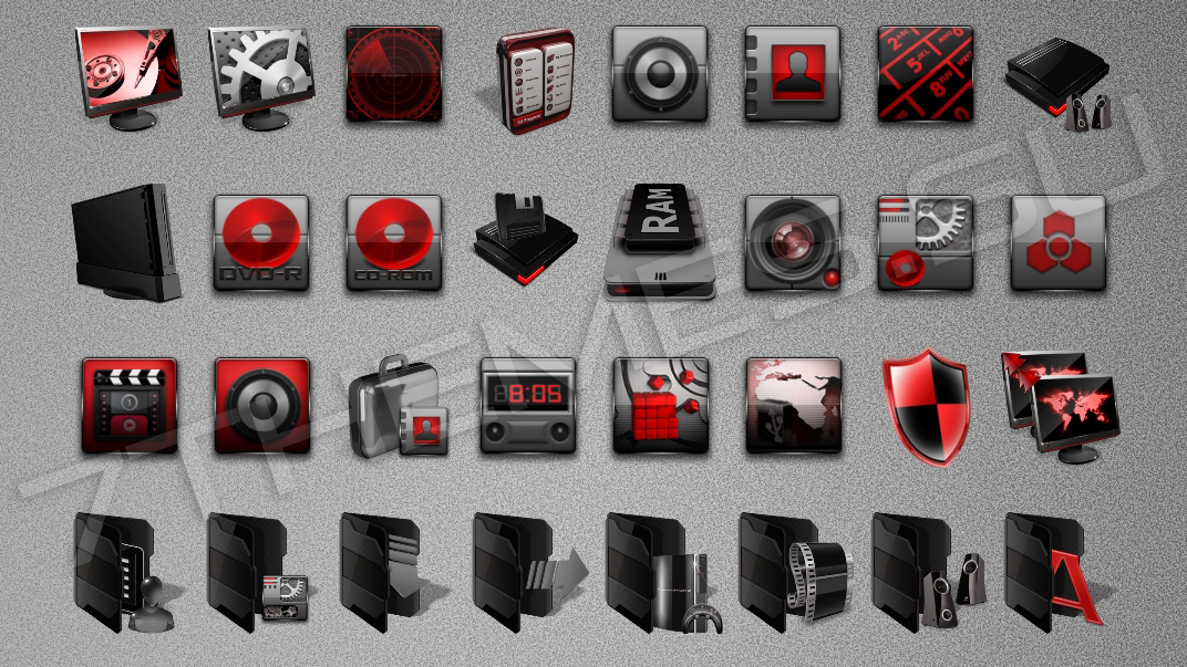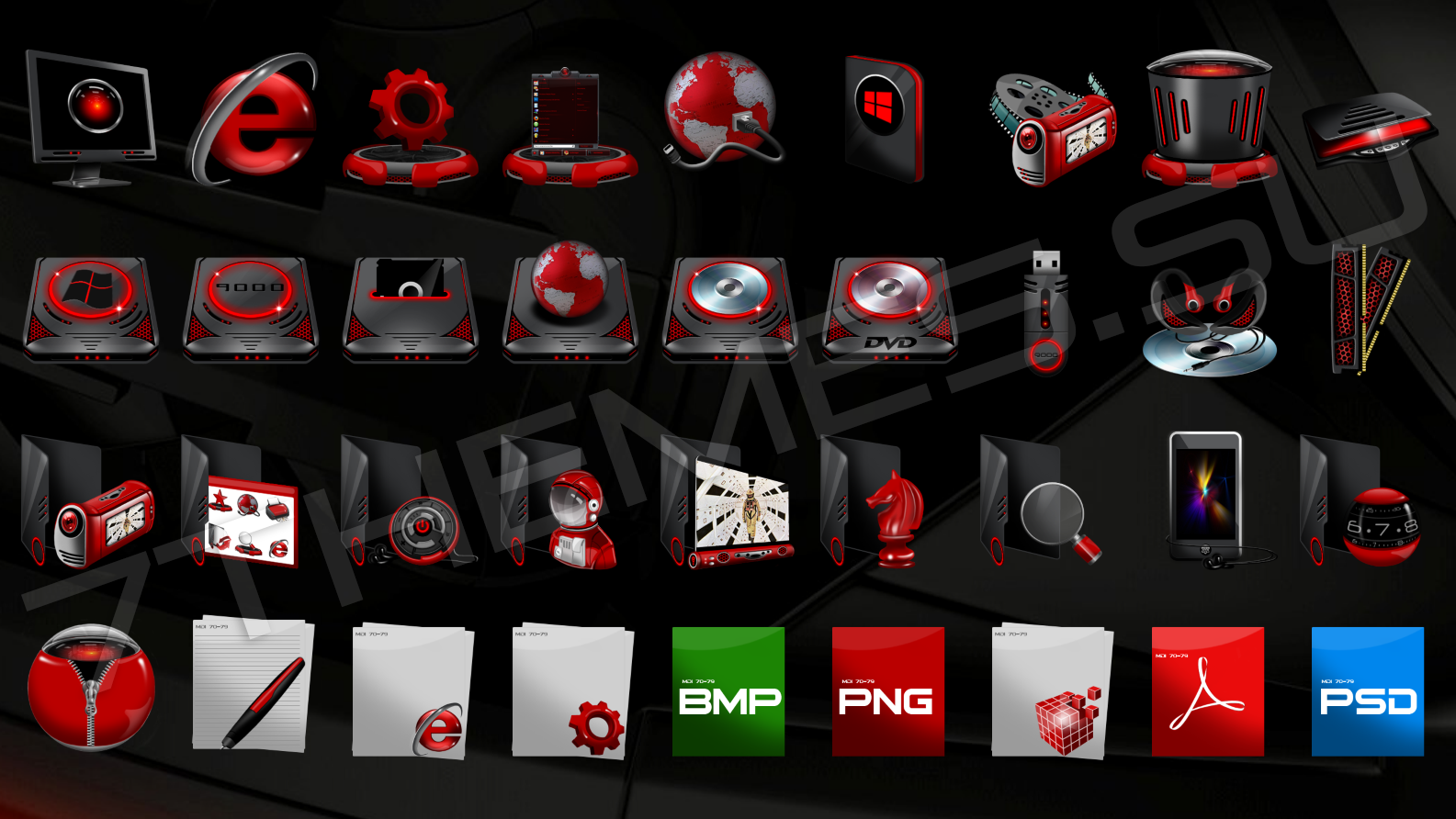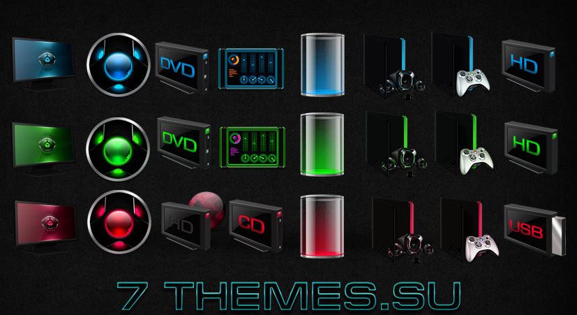 При смене темы будут заменены все системные значки рабочего стола, отображение типов расширений, вид значков жестких дисков и подключенных устройств, изменён внешний вид папок и нескольких ярлыков Панели управления.