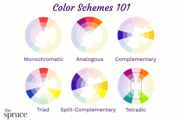Цветовые схемы, как правило, создаются путем выбора и объединения двух, трех или четырёх цветов в палитре.