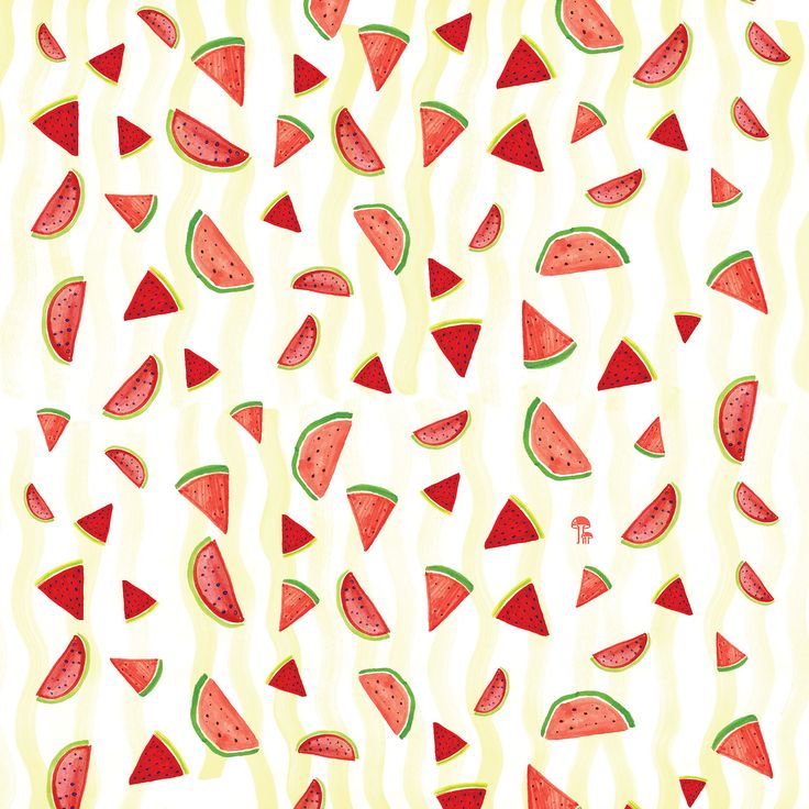 Бесшовные паттерны — это узоры, состоящие из повторяющихся элементов, граница между которыми не очевидна. Конечно, это весьма условное определение: даже на принтах, которые называют бесшовными, найти границу может быть проще или сложнее. Посмотрите на примеры ниже. В первом мы легко находим «элементарную частицу» и понимаем, что это просто нарисованные на квадратном холсте четыре арбузные дольки. А вот как сделать паттерн наподобие второго, не настолько очевидно. Что ж, этим мы сегодня и займемся!