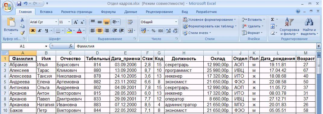 Хорошим примером базы данных такого типа является электронная таблица, хранящаяся на вашем локальном компьютере.