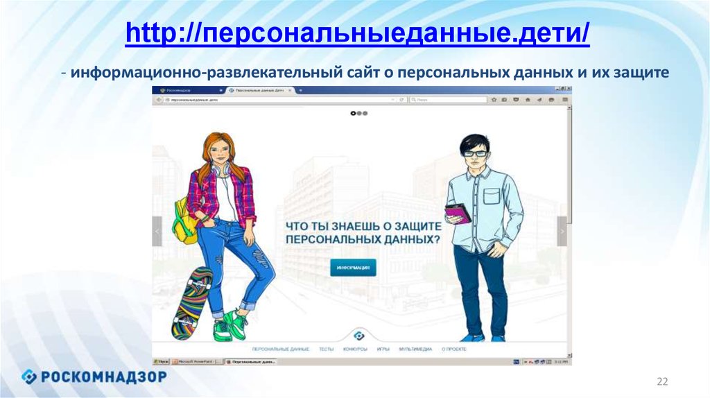 Федеральная служба по надзору в сфере связи, информационных технологий и массовых коммуникаций (Роскомнадзор — Уполномоченный орган по защите прав субъектов персональных данных) информирует Вас, что в январе 2007 года вступил в силу Федеральный закон от 27 июля 2006 года № 152-ФЗ «О персональных данных».