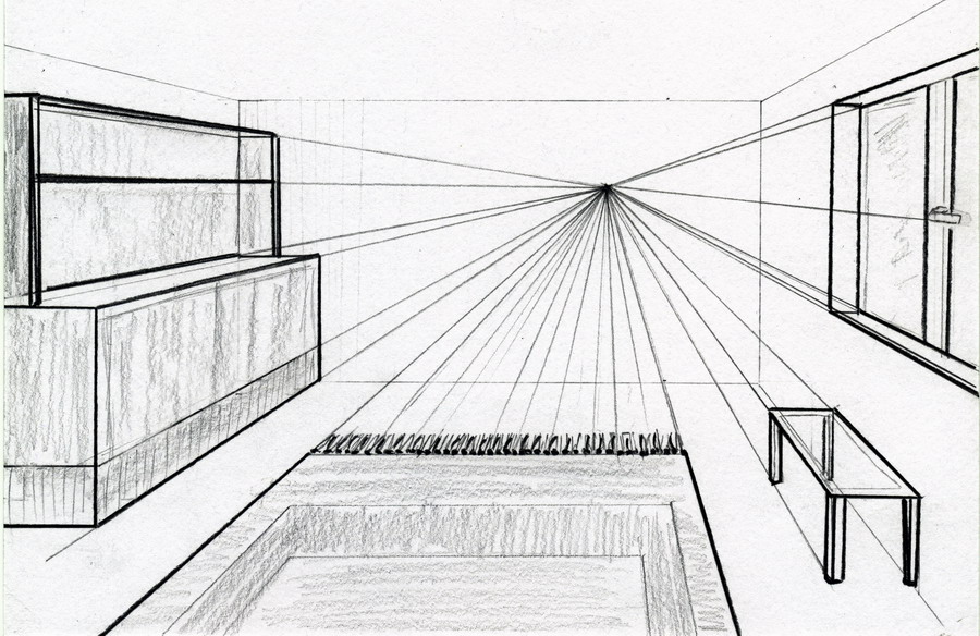Понять это важно. Потому что для первого варианта точка схода одна, для второго — две. И их строить нужно соответственно разными способами. И, пожалуй, это первый навык, который нужно как следует отточить. Смотрите интерьеры в журналах, фотографии в интернете и пытайтесь определить — в какой перспективе находится предмет?