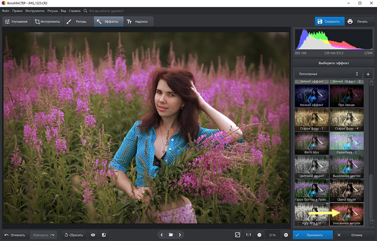 Эффекты. Стилизуйте снимки под фотопленку или добавьте цвета ваших любимых фильмов на фотографию. Каталог эффектов содержит 100+ пресетов для воплощения любых идей.