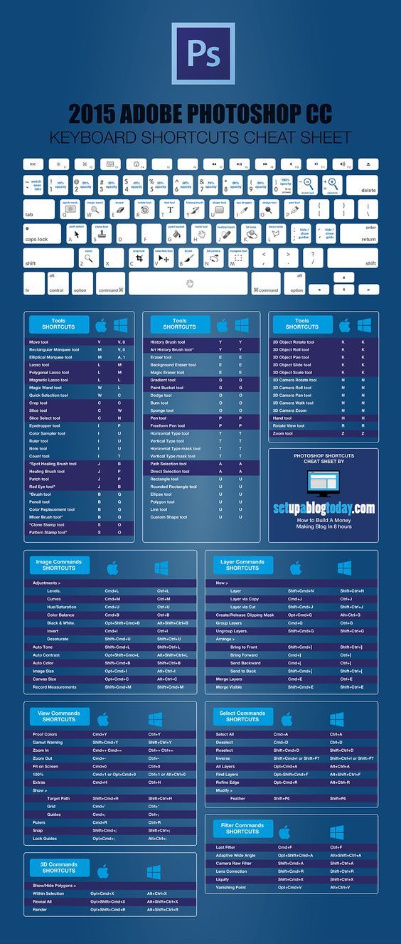 Есть много документов в сети в формате PDF, которые описывают горячие клавиши, но не забывайте, что вы можете посмотреть их значения прямо в Фотошопе или даже создать свои собственные , просто нажмите Ctrl + Alt + Shift + K.