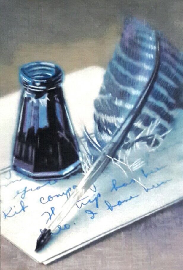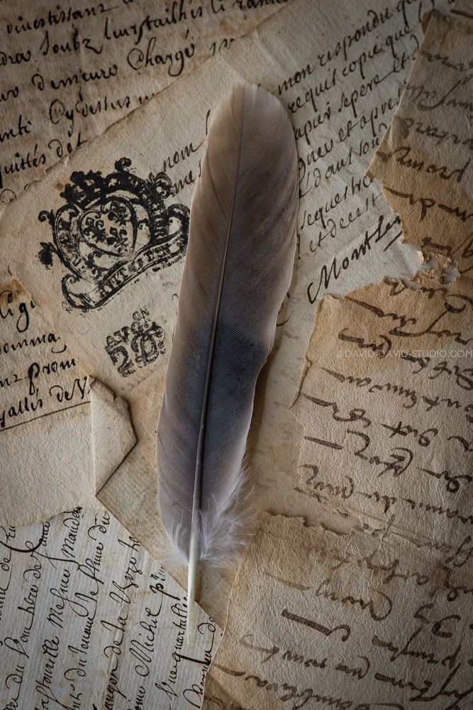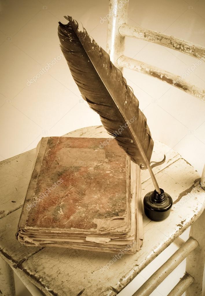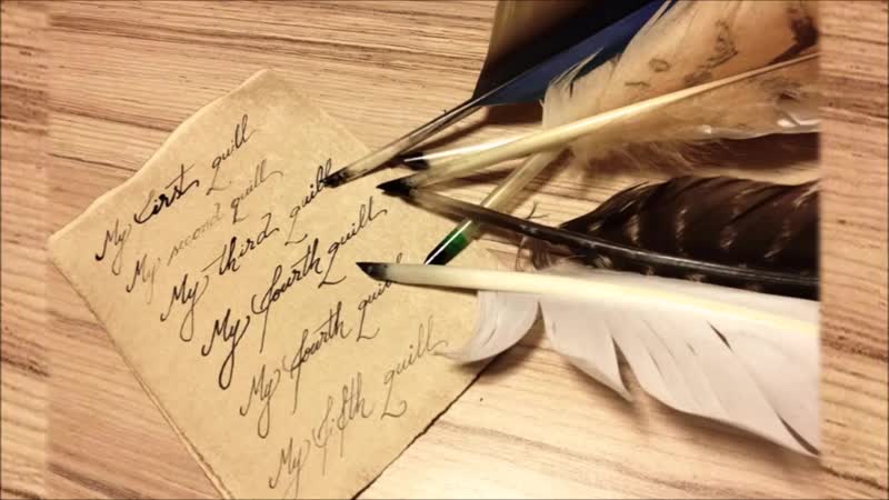После некоторых изысканий я узнала, что для письма используются в основном гусиные, реже вороньи или индюшиные перья. (Наше куриное, увы, не котируется, но у нас другого не было). Перо оптимально брать третье или четвертое маховое обязательно с левого крыла птицы — чтобы удобно лежало в руке. Затачивают кончик пера бритвой или перочинным ножиком (откуда, кстати, и пошло его название). Перед этим очищают кончик пера от пленочки сверху.