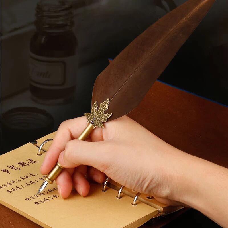 В  детстве, мы конечно пробовали писать перьями, но у нас тогда не было интернета, и я понятия не имела, что перо надо затачивать, а не просто макать в чернила и писать как палочкой :))