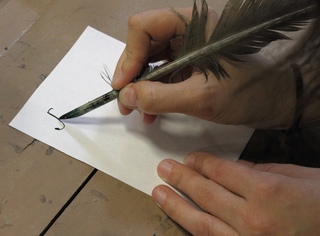 В конце очищают внутреннюю полость пера. Для придания ему большей крепости, перо вываривают в известковом растворе и «закаляют», втыкая кончик в горячий (около 60 градусов) песок.
