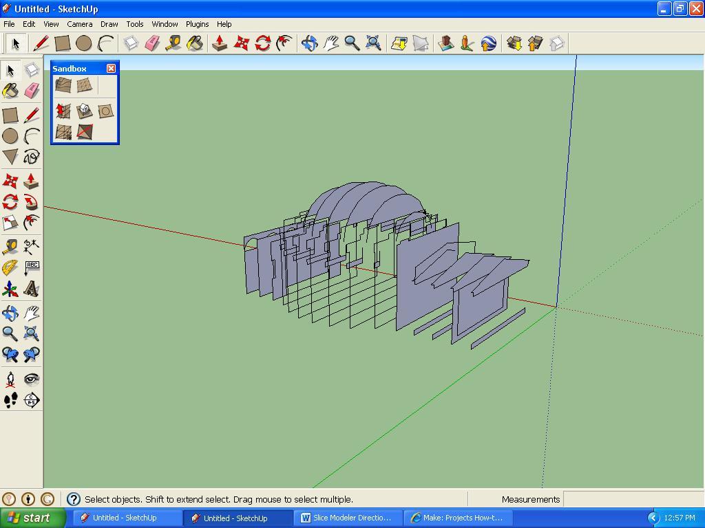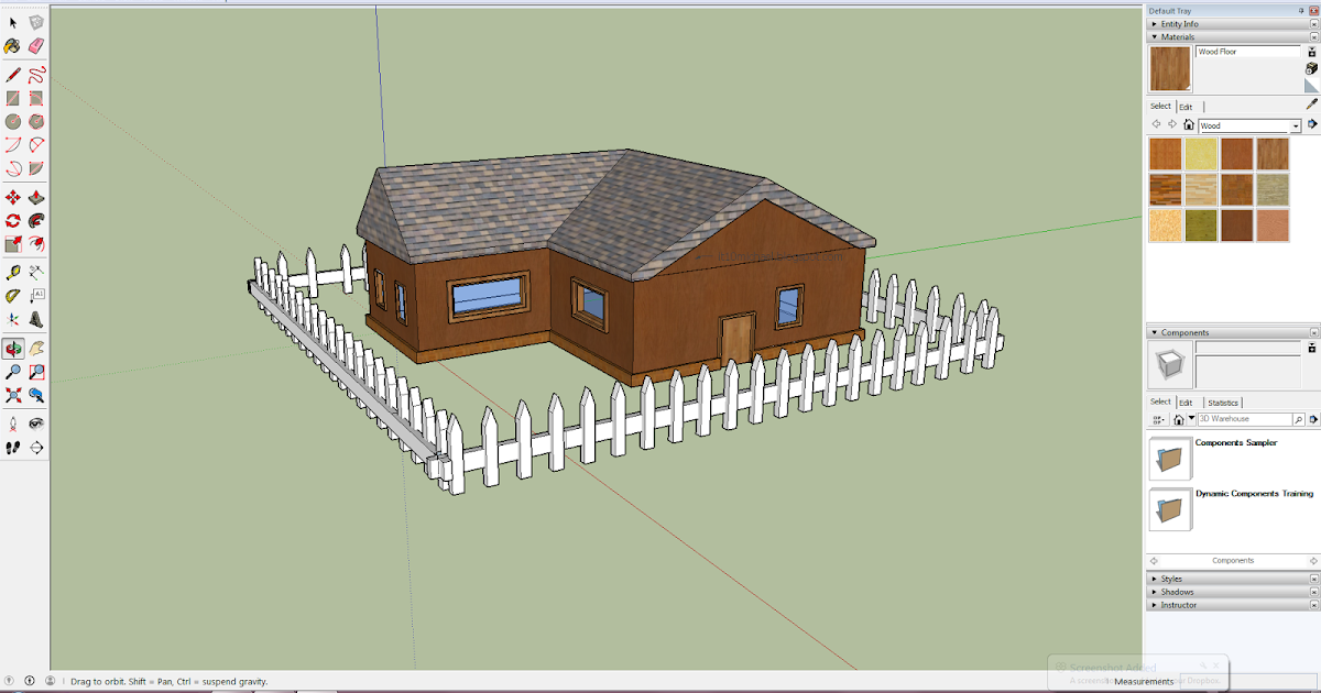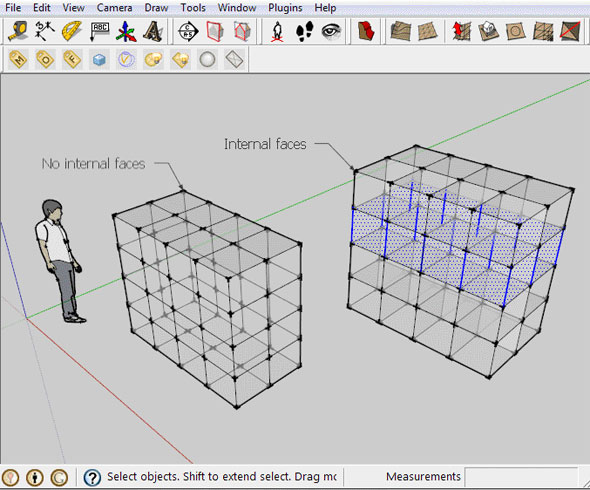 Особенности программы SketchUp: Программа моделирования не дает возможности строить объемные проекты. Весь проект состоит из линий и точек. В целом поверхность состоит из линий. А объемы формируются из поверхностей. Для предотвращения слипания линий друг с другом в приложении используется принцип группировки в группы и компоненты. А сам процесс работы в SketchUp аналогичен с процессом строительства дома. В приложении делаются разметки, указываются обвязки, проектируются лаги перекрытий и т.д.