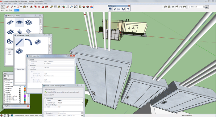 Программный продукт SketchUp позволит быстро создать концепцию здания в формате 3D, а затем проработать конструктив с учетом выбранного материала и технологии строительства, спроектировать фасады, разместить окна, двери и лестницы, выпустить на основе модели чертежи, получить спецификации по материалам, сметы, а также спланировать строительство на базе наглядных монтажных схем.