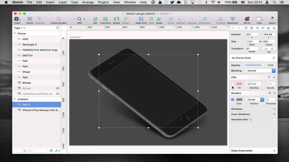 Magic Если вы перешли на Sketch c Photoshop, вы, время от времени, можете скучать по свободной трансформации. Например, когда вы пытаетесь поместить экран в перспективный макет. Magic Mirror 3 позволяет вставить артборд прямо в фигуру, и он автоматически примет вид фигуры.