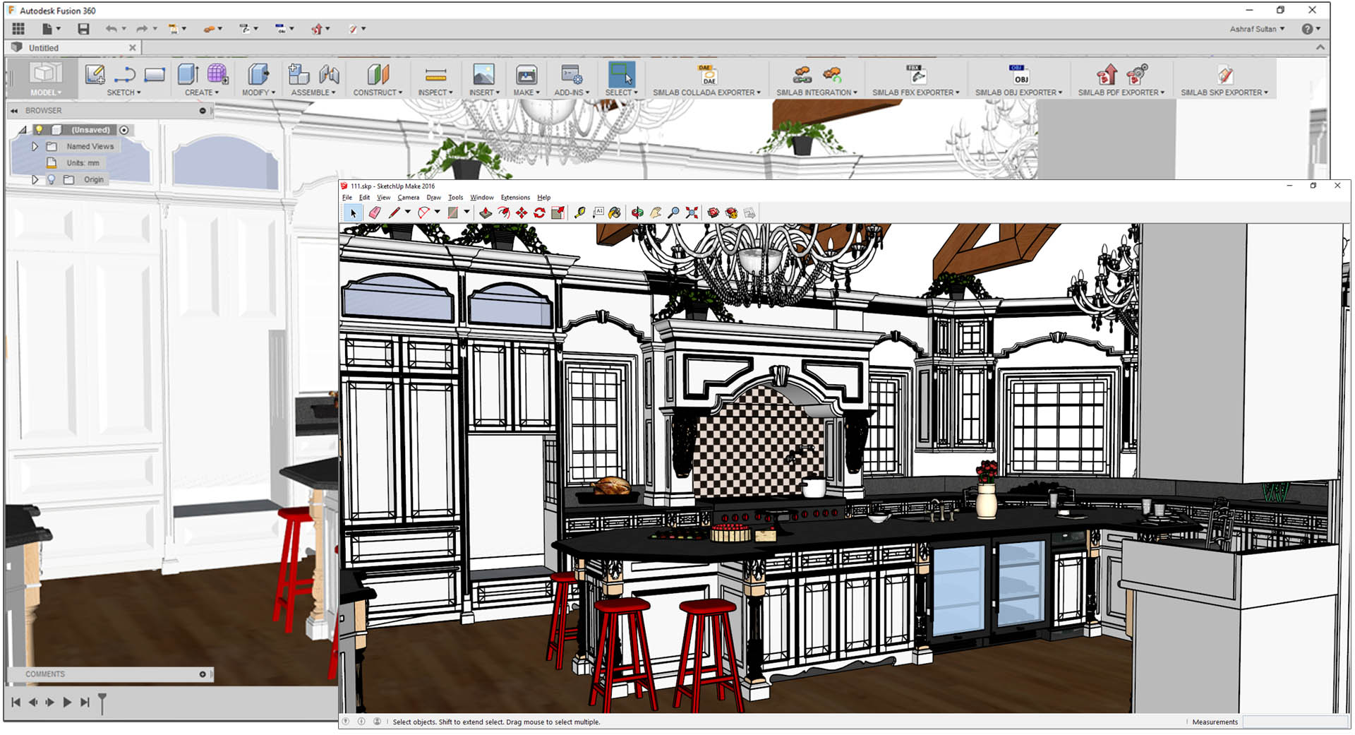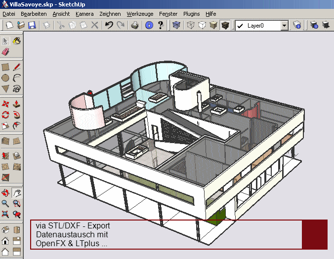 Он в основном работает с SketchUp 8 и с AutoCAD 2010. За счет разгруппировки и перегруппировки упрощает модель при проектировании. Среди недостатков данного плагина можно выделить то, что при переносе модели он экспортирует только грани и сегменты. А иногда случается, что еще и меняется ориентация элементов.