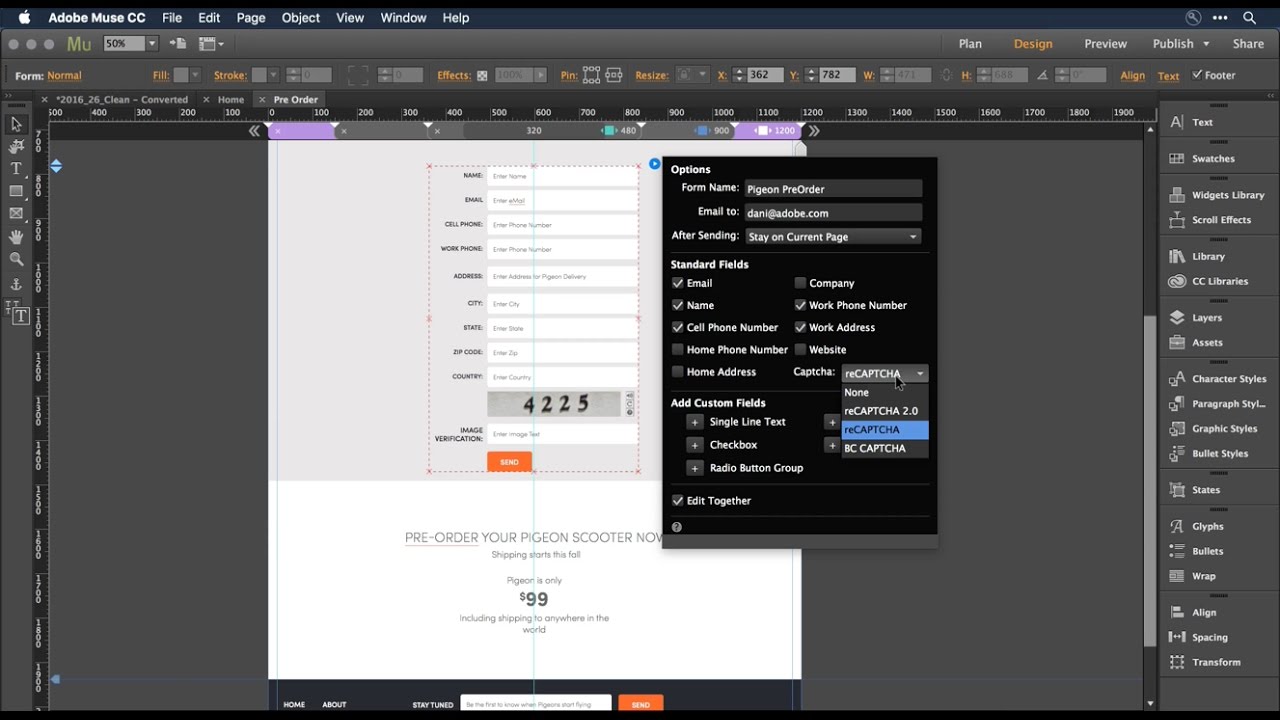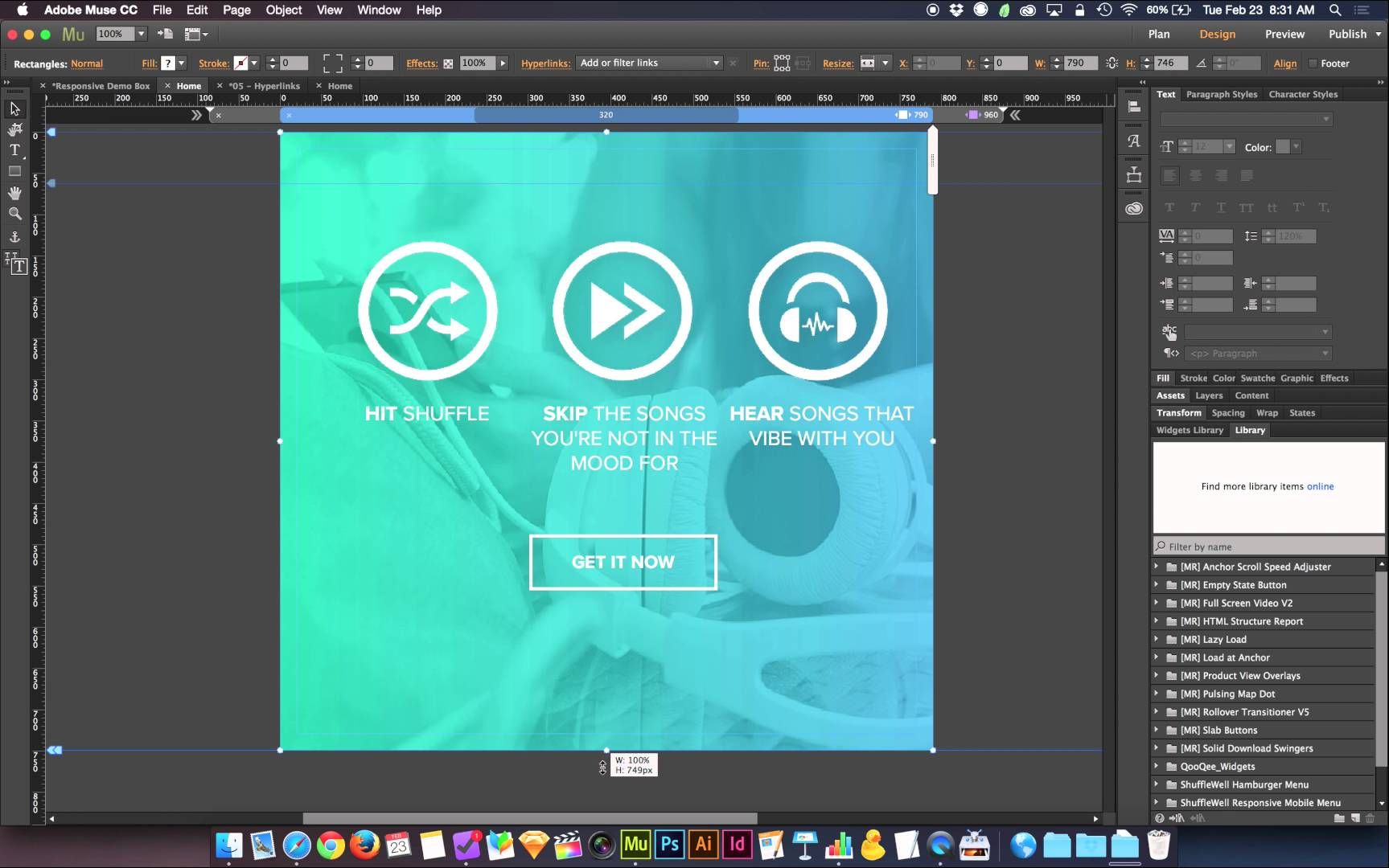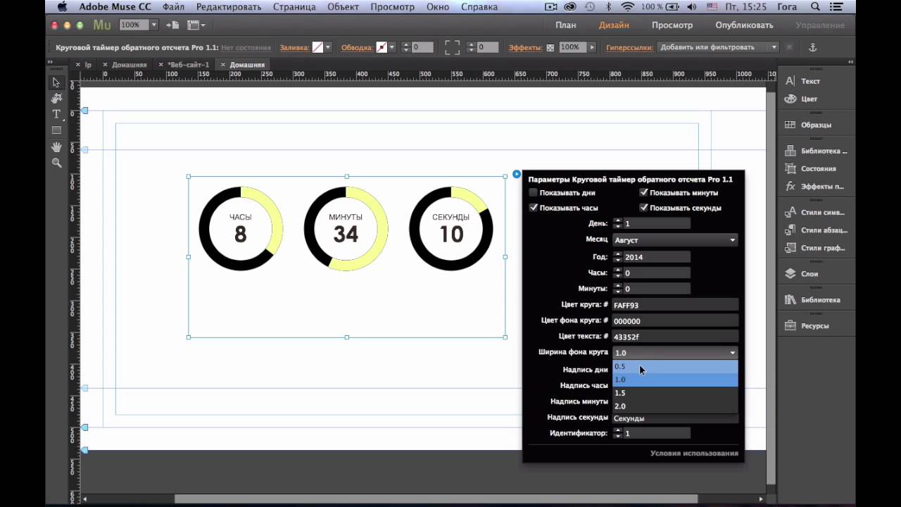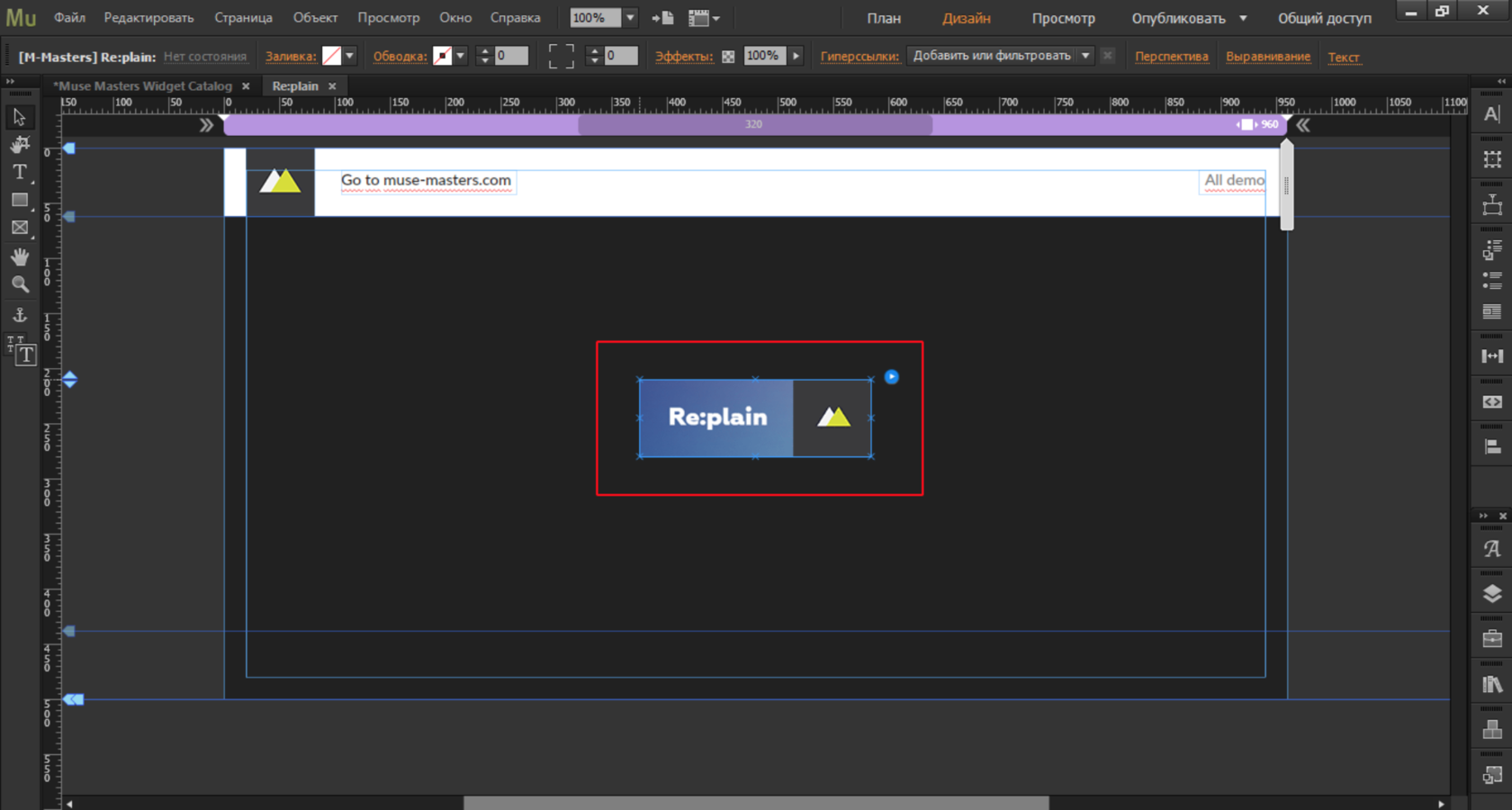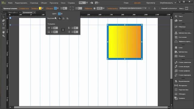 Виджет анимация появления объектов в Adobe Muse