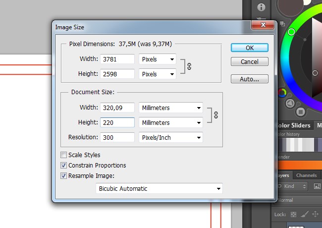 - Установите разрешение 300 пикселей/дюйм и цветовой режим Цвет CMYK . Это подходящие настройки для работы с печатью.