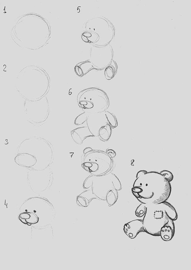 - Начиная от передних лап выводятся задние лапы зверька. Они дополняются тремя овалами маленького размера внутри контуров.