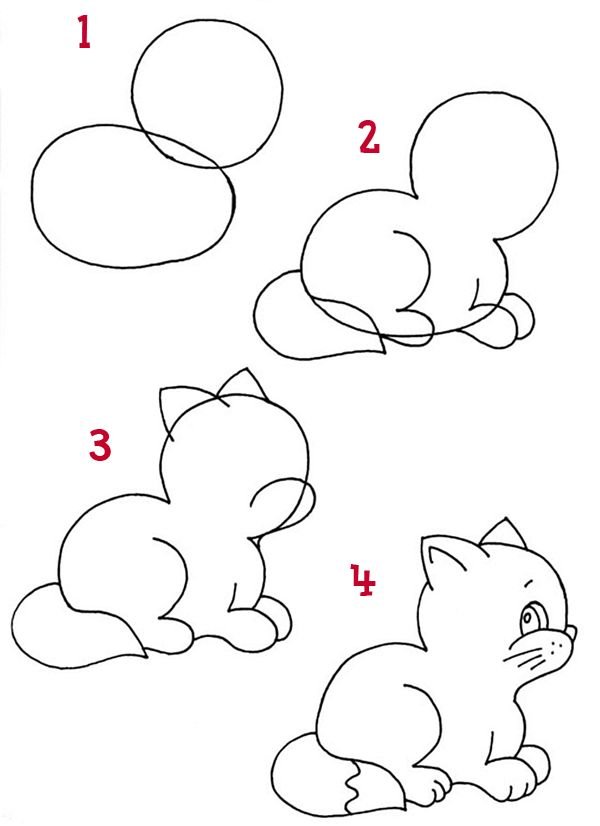 Секрет заключается в изменении выражения мордочки, поэтому с детьми перед рисованием можно повторить основные эмоции (радость, злость, удивление, грусть) и то, как они отражаются на лице. Главное показать это наглядно и оставить перед глазами детей простые смайлы с эмоциями. Тогда дети смогут не просто повторить рисунок взрослого, а выдумать что-то своё.