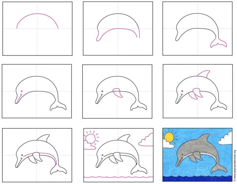 Шаг 3. Фломастером обводятся все контуры, после чего необходимо стереть вспомогательные линии от карандаша.