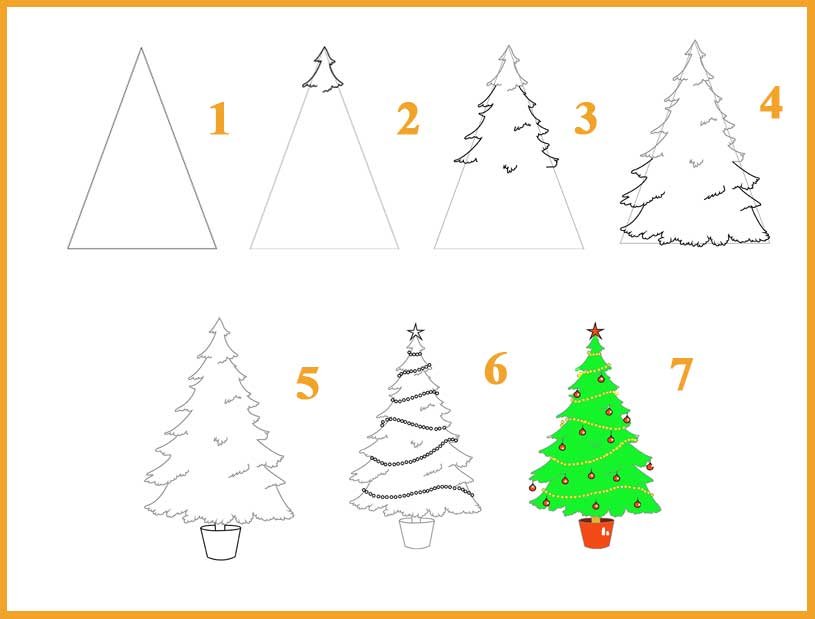 Есть так много праздничных украшений на выбор при украшении настоящей елки, и то же самое для рисунка дерева. Добавьте рождественские огни, леденцы, бантики, фигурные украшения и многое другое.