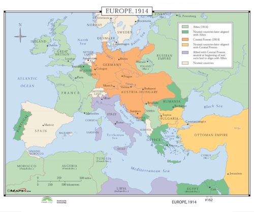 Великобритания», 1914 годКарта отображает политическую ситуацию в Европе в начале Первой мировой войны.
