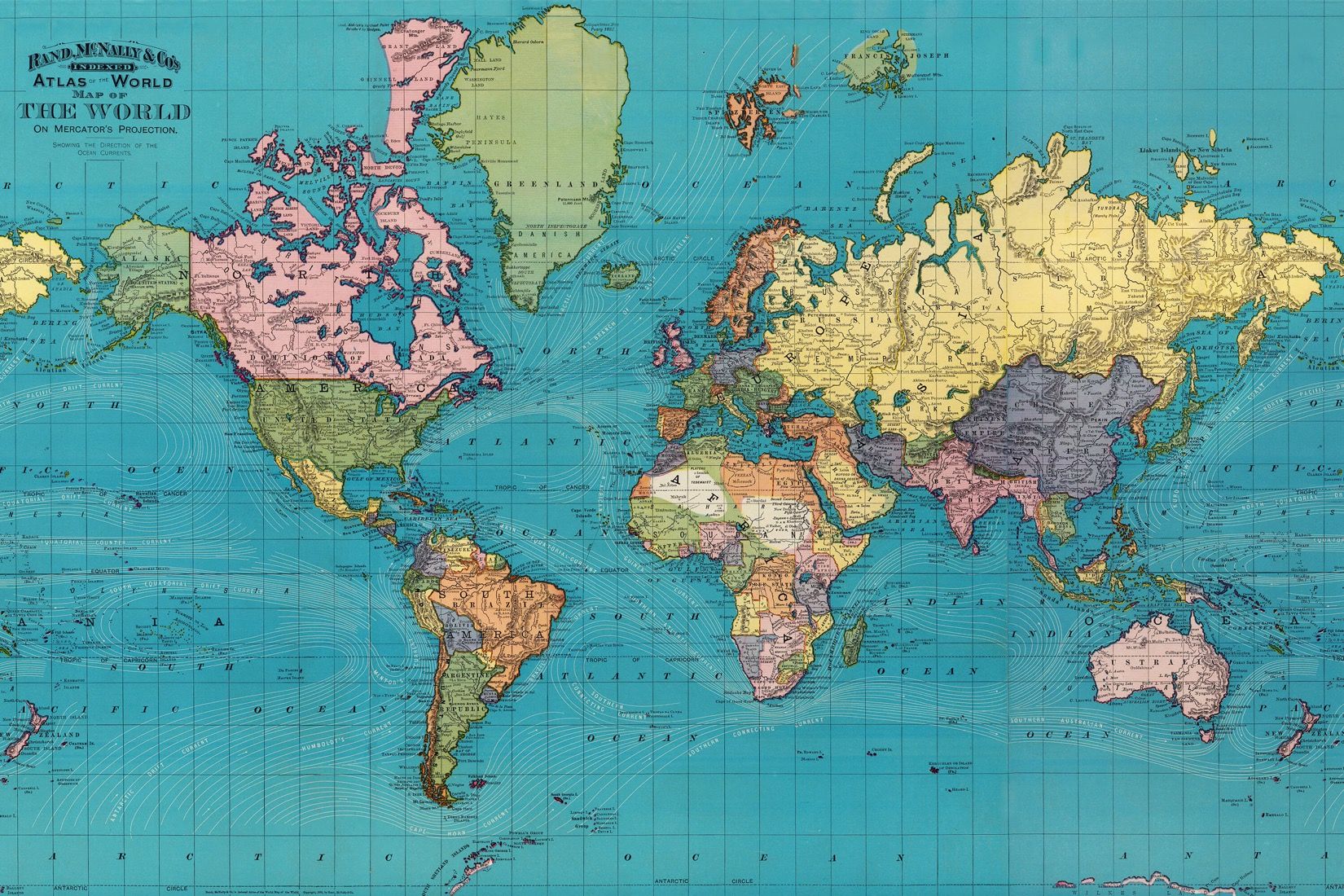 Вертикальная ось мира проходит через США. Америка оказывается «островом», омываемом Тихим океаном с запада и Атлантическим океаном с востока.